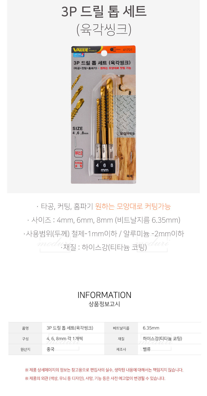 3P 드릴톱세트 커팅 일반드릴 곡선 타공 홈파기