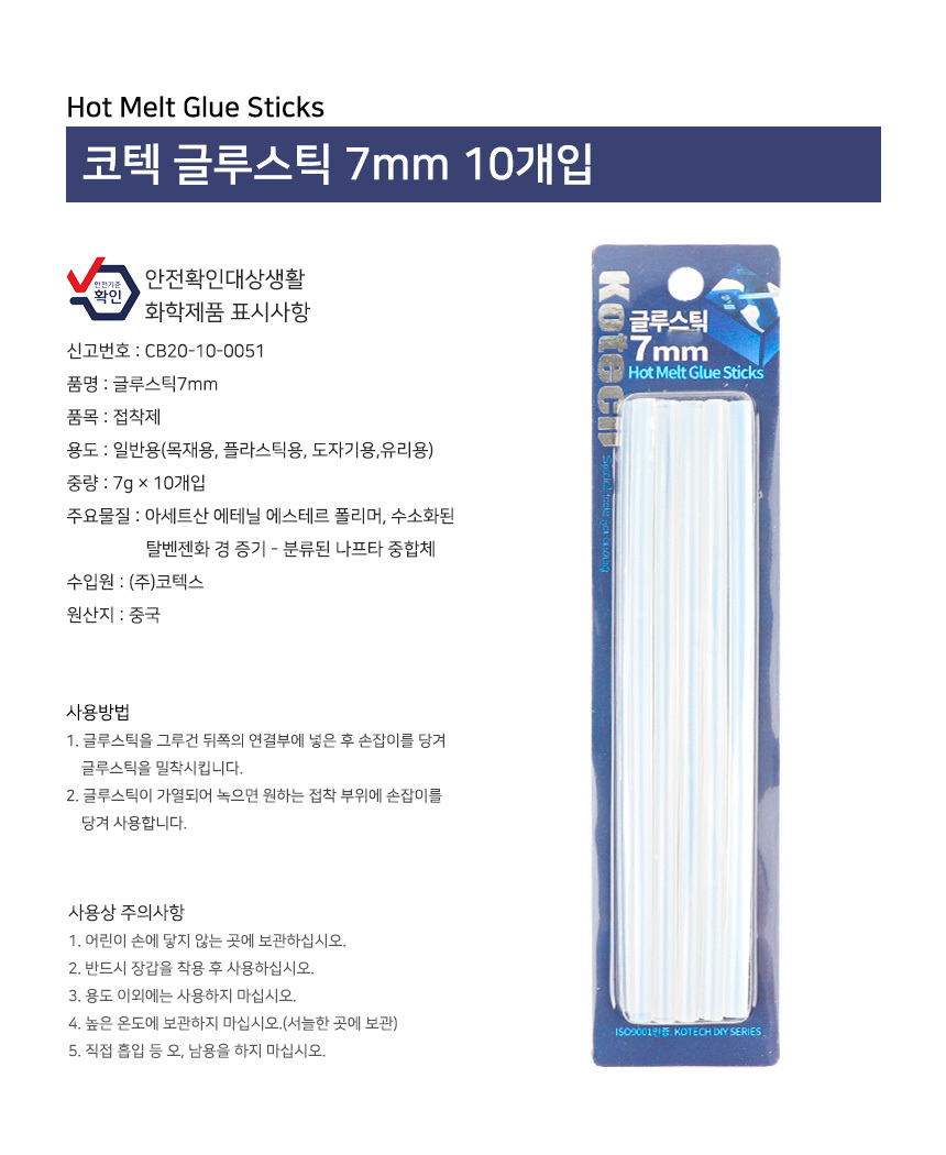 코텍글루스틱7mm 10개입 핫멜트 글루건 들기 DIY
