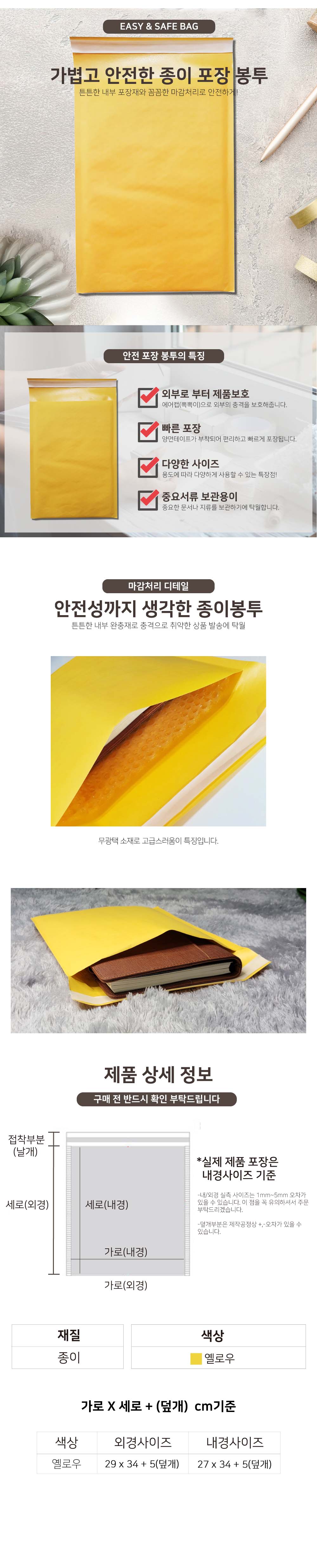 뽁뽁이 포장용 종이안전봉투 에어캡 택배봉투 29 X 34 100장