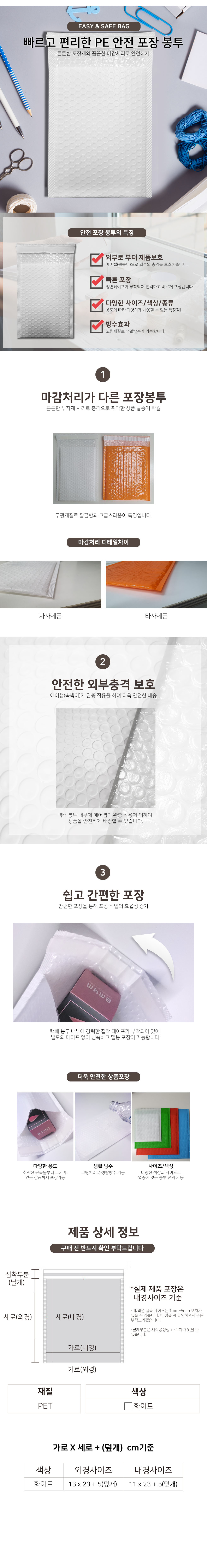 뽁뽁이 방수 포장용 에어캡봉투 택배봉투 화이트 13 X 23 100장