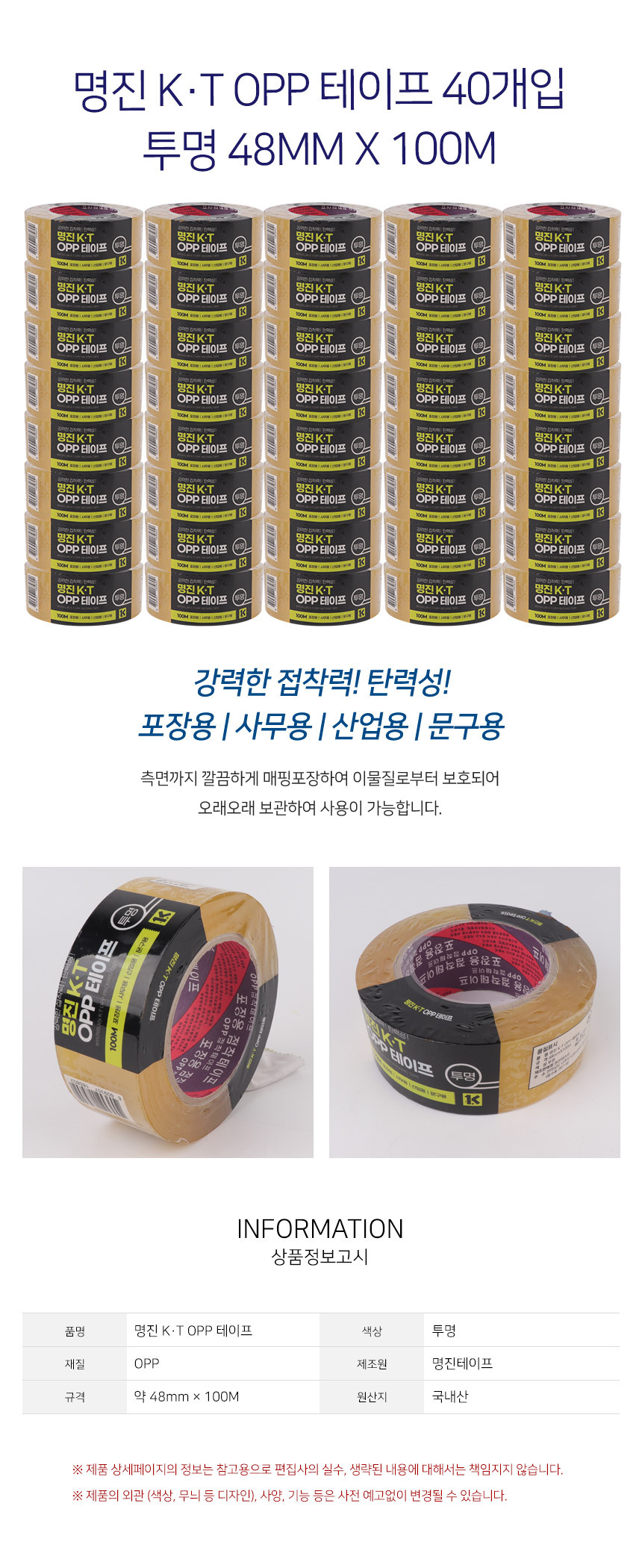명진 KT OPP 데이프 100M 투명 40개입
