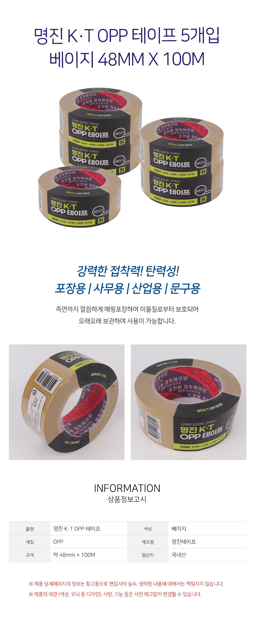명진 KT OPP 데이프 100M 베이지 5개입
