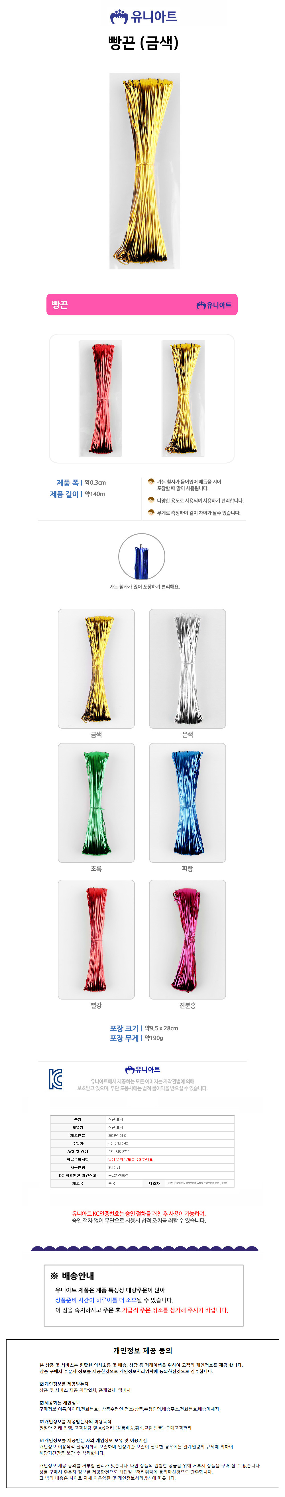 유니아트 (공예철사) 5000 빵끈 (금색) 선물포장 끈