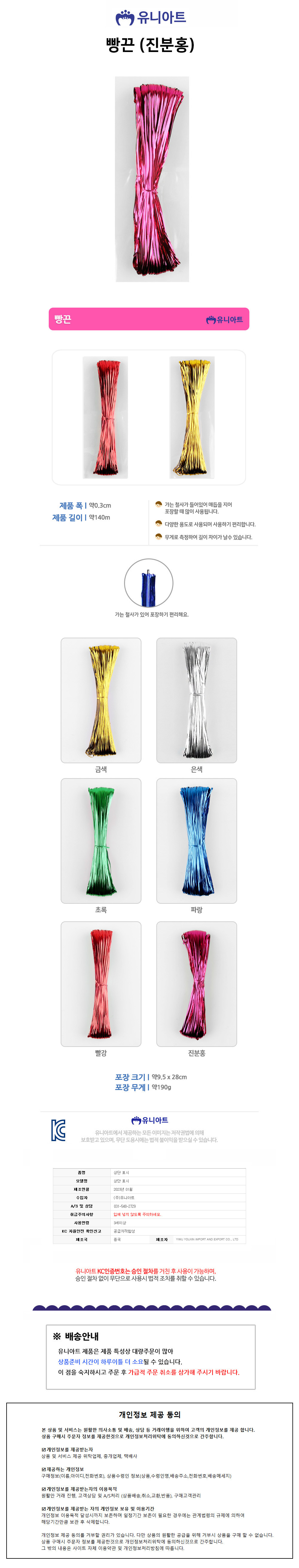 유니아트 (공예철사) 5000 빵끈 (진분홍) 선물포장 끈