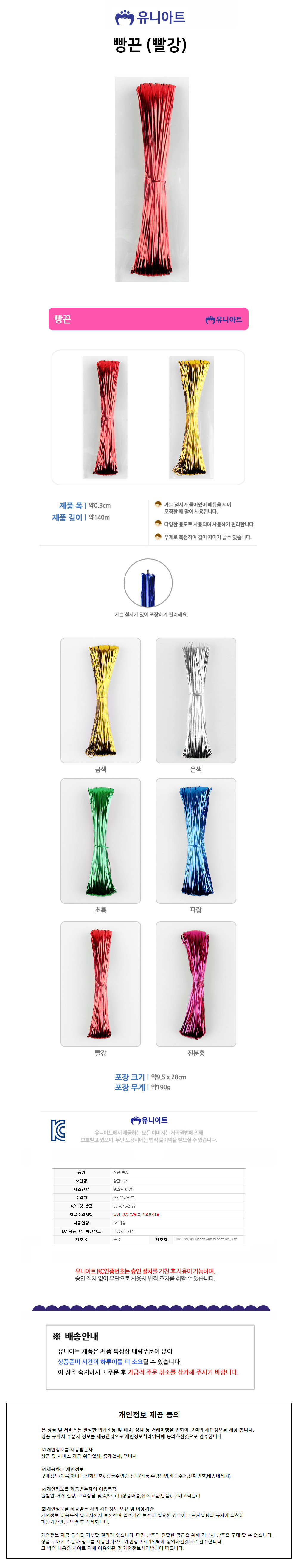 유니아트 (공예철사) 5000 빵끈 (빨강) 선물포장 끈