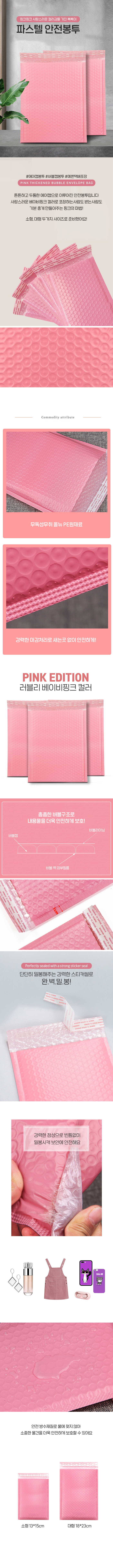 핑크 안전 에어캡 뽁뽁이 비닐 봉투 파스텔 분홍 포카 교환 2size 택배 봉투형 뾱뾱이