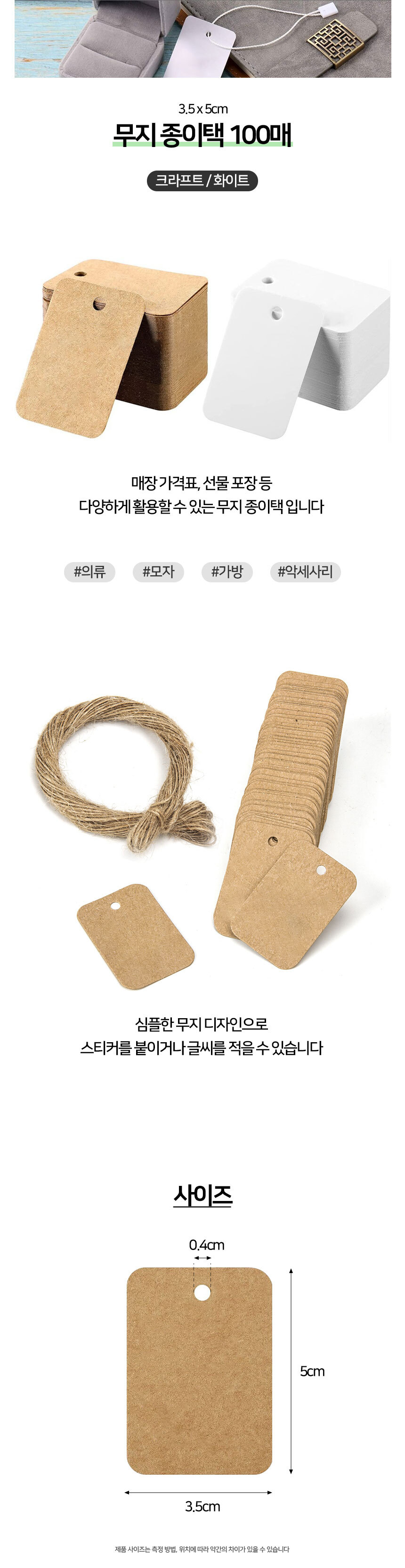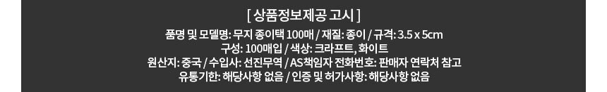 무지 종이택 의류택 크라프트 3.5x5cm 100매