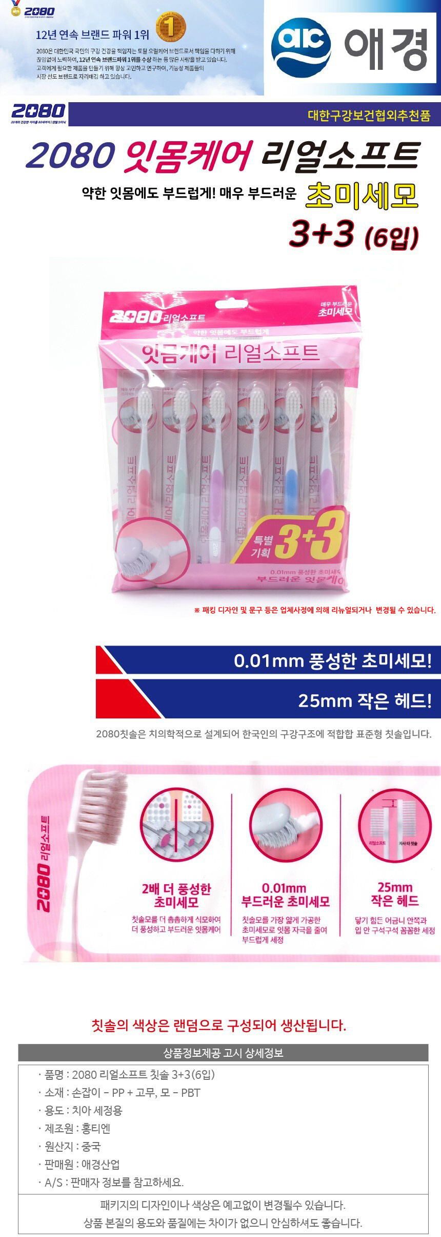 애경 2080 잇몸케어 리얼소프트 칫솔 6개입 초미세모