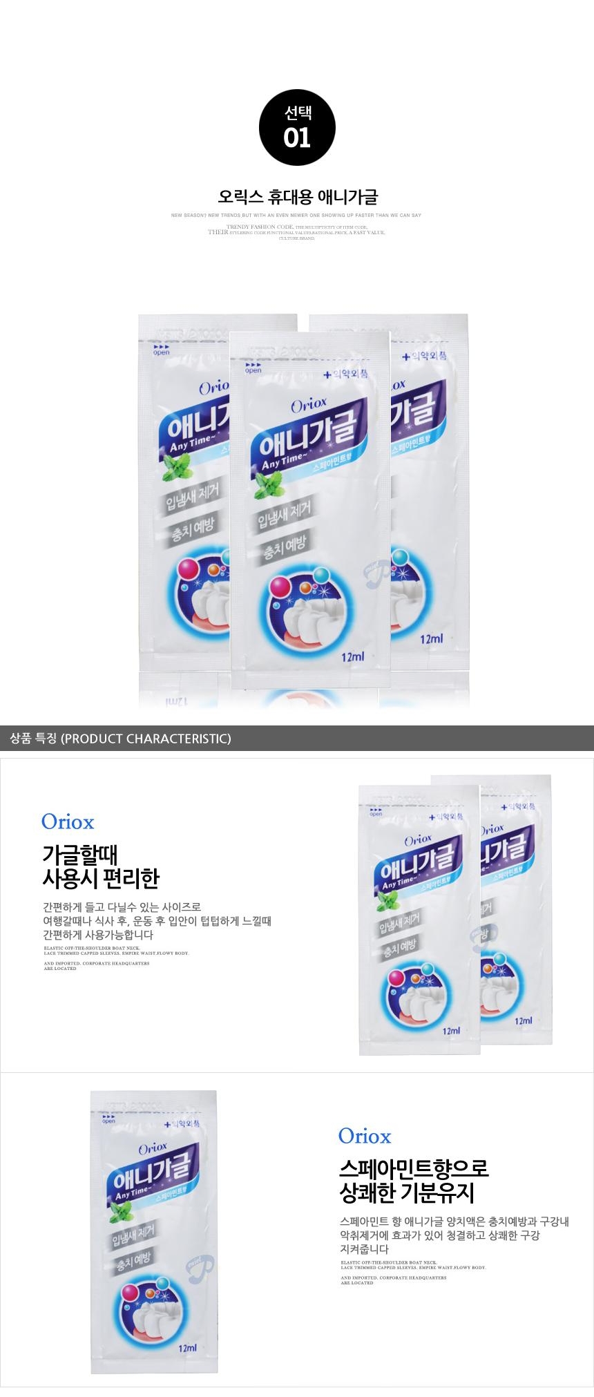 대용량 일회용 가글 가그린 12ml 10개 휴대용가글 오릭스 애니 가글 구강청결 위생