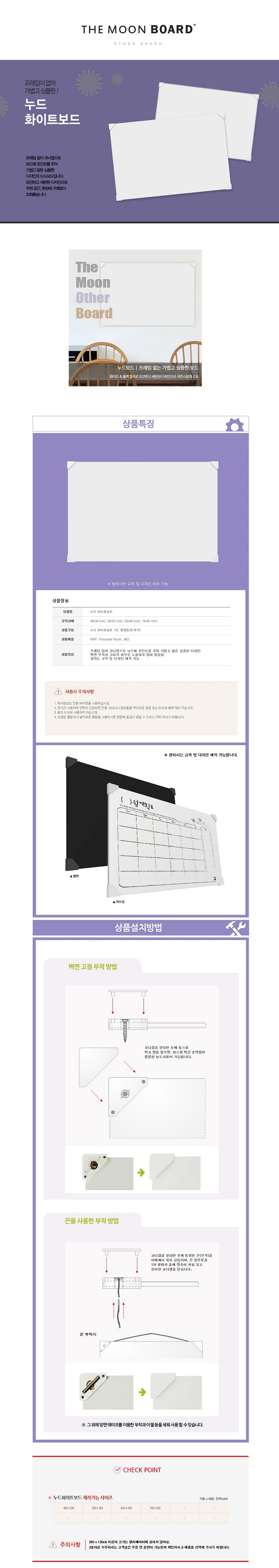품명 및 모델명 두문 누드화이트보드(70x50cm)