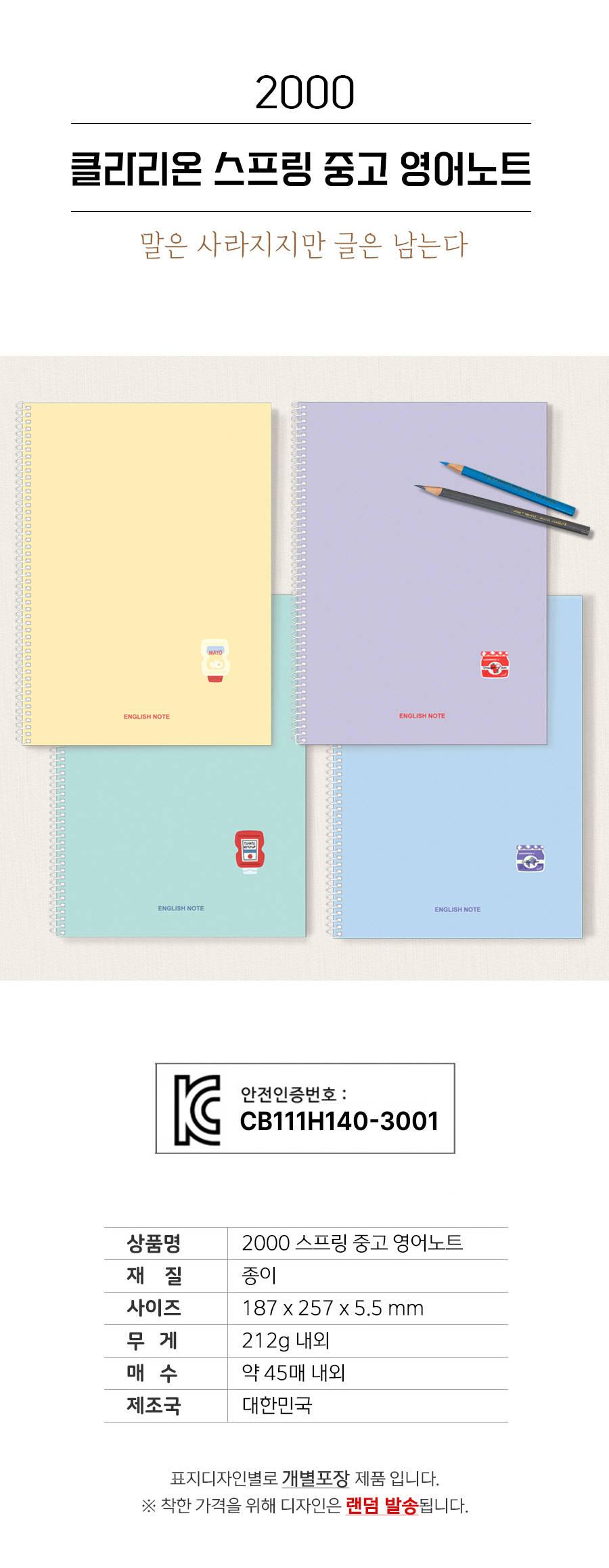 2000 클라리온 스프링 중고 영어노트(랜덤발송)
