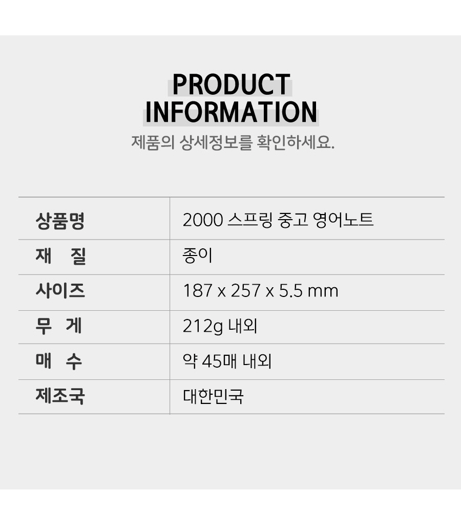 품명 및 모델명 2000 스프링 중고 영어노트