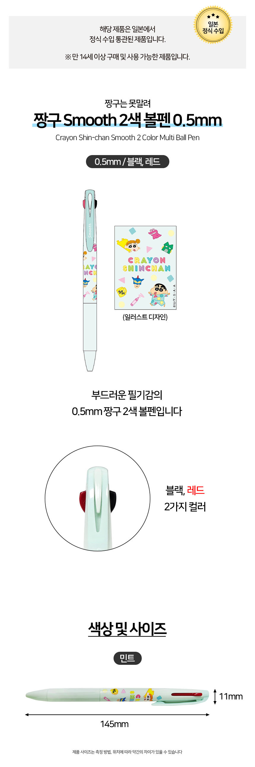 짱구 스무스 2색 볼펜 0.5mm 민트