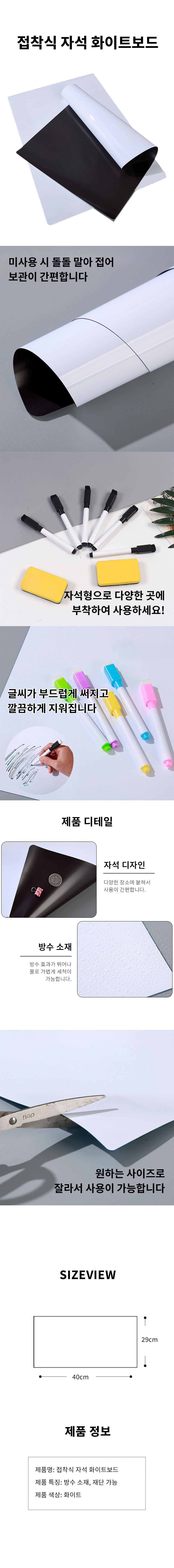 탈부착 화이트 메모 보드 붙이는 자석 메모판 40x29cm