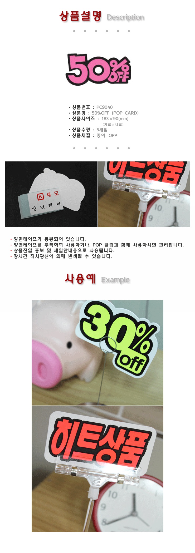 업소용 마트용품 POP카드-50 OFF 매장 안내표지판