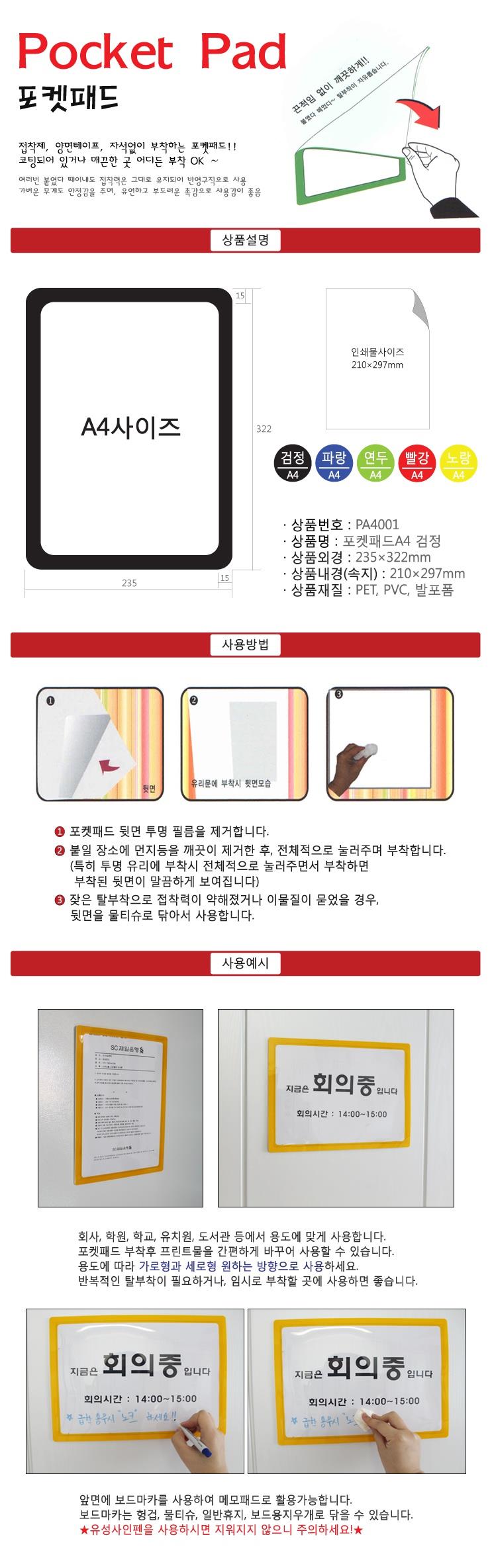 가벼운 탈부착 포켓패드 A4-검정 부착용꽂이 부착식