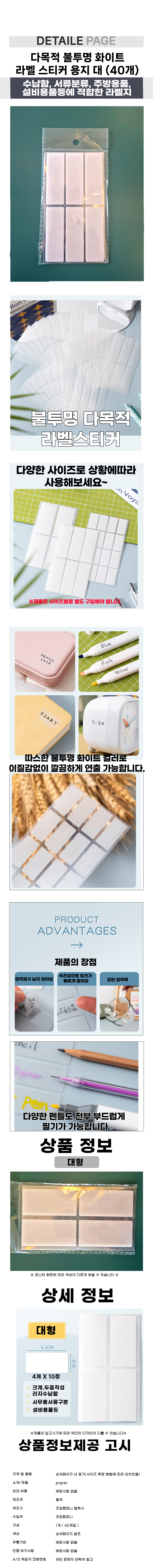 다목적 불투명 화이트 라벨 스티커 용지 대 (40개)
