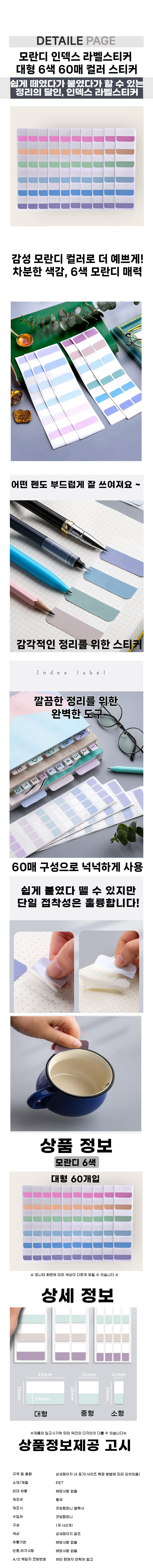 모란디 인덱스 라벨스티커 대형 6색 60매 컬러 스티커