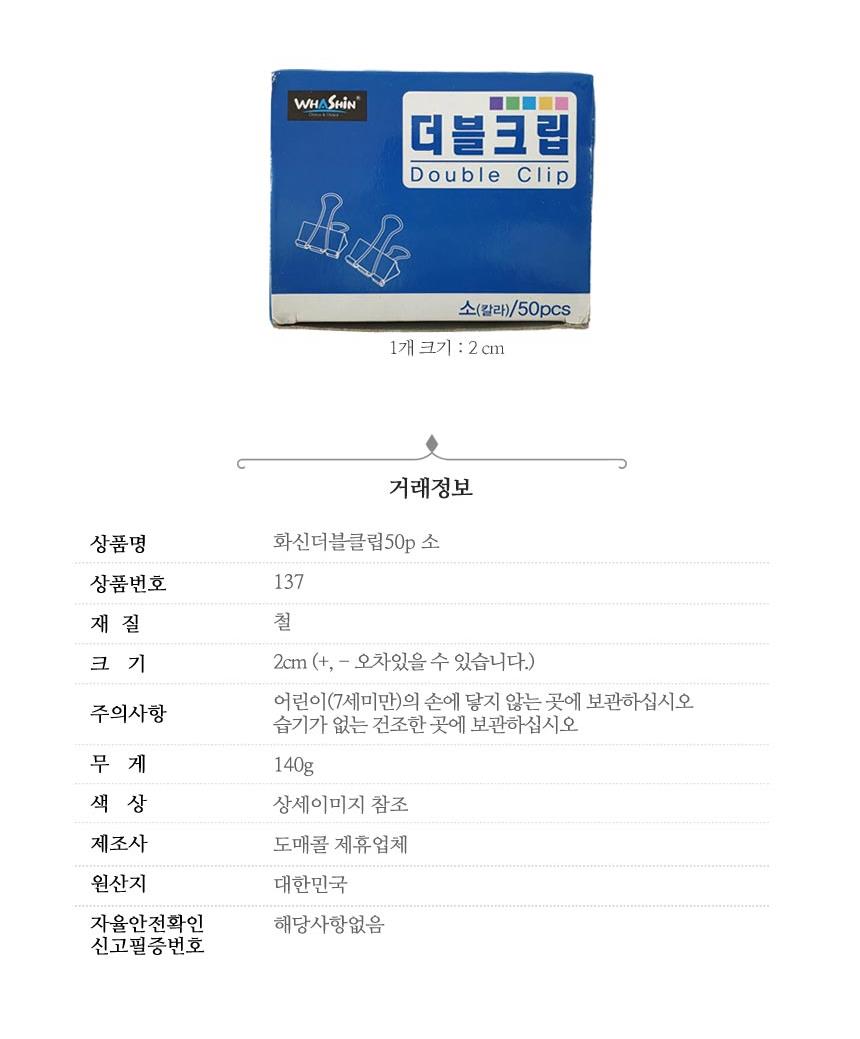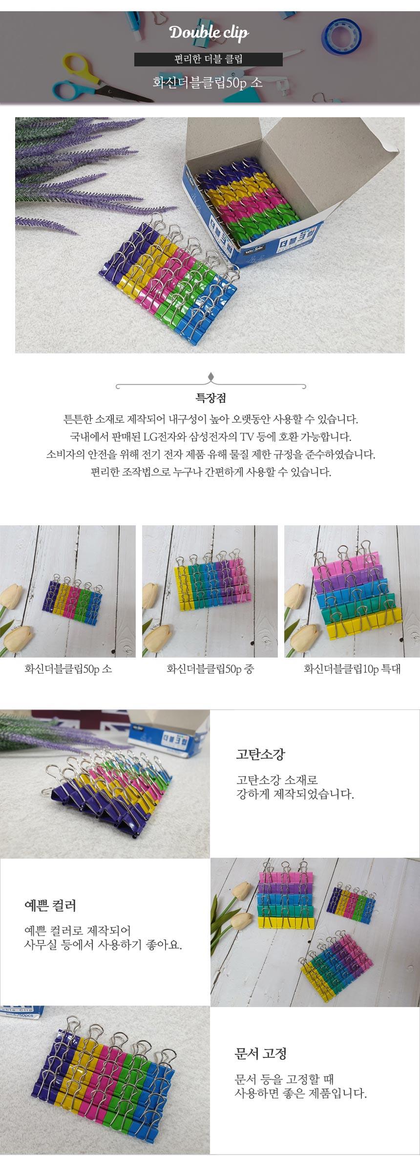 컬러 더블 크립 소 50P x5개 서류클립 서류집게 클립