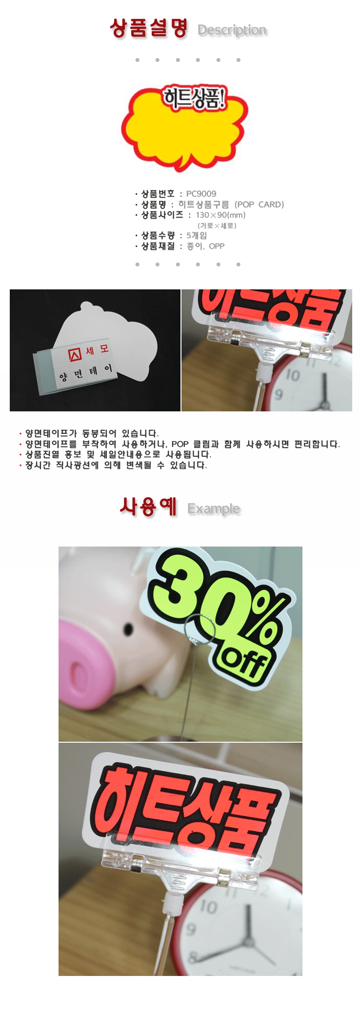 업소용 마트용품 POP카드-히트상품 구름 x10개 쇼카드
