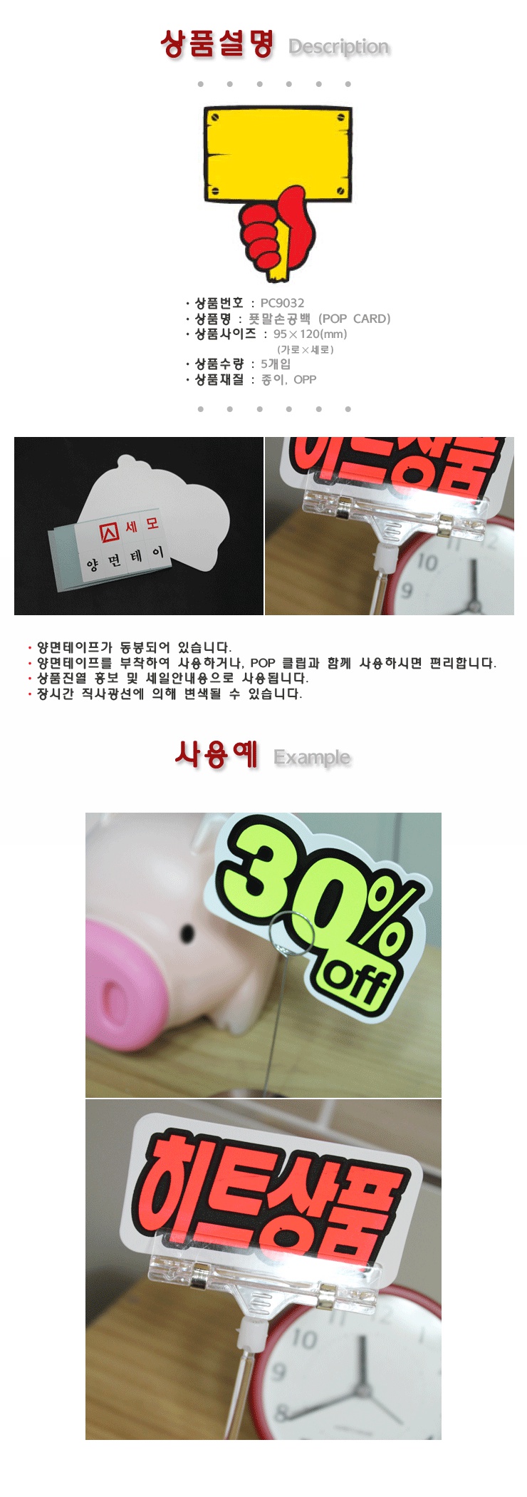업소용 마트용품 POP카드-팻말 손 공백 x10개 피오피