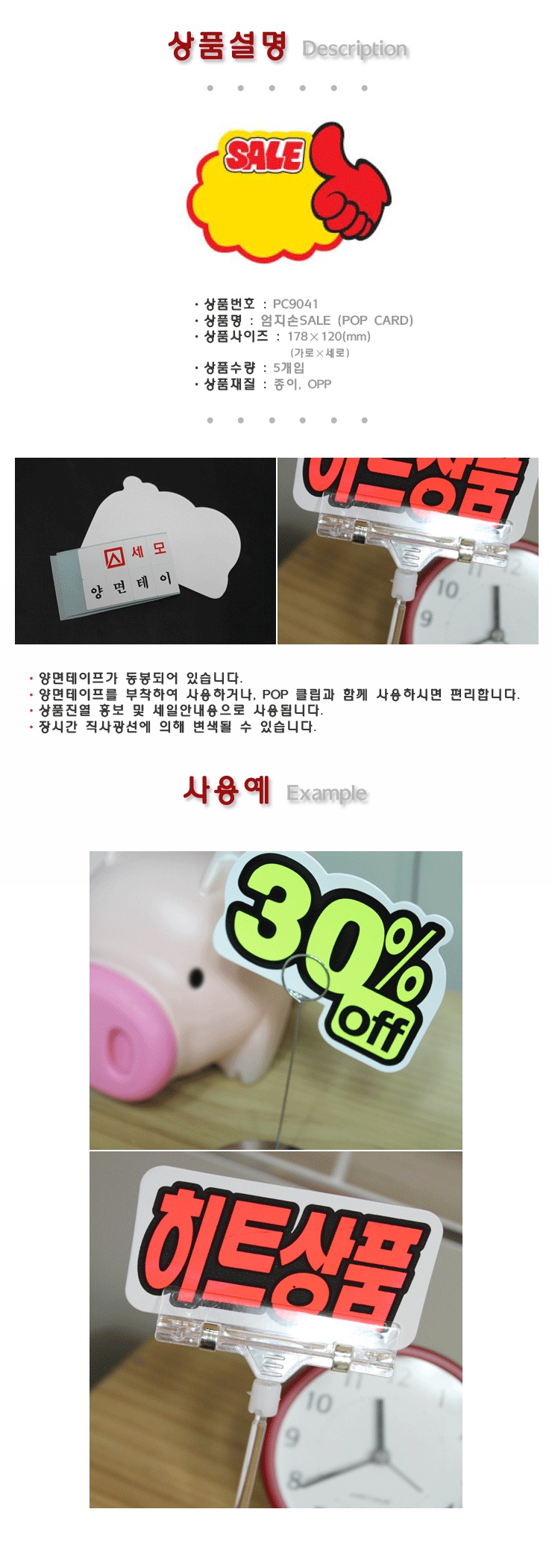 업소용 마트용품 POP카드-엄지손 세일 x10개 안내판
