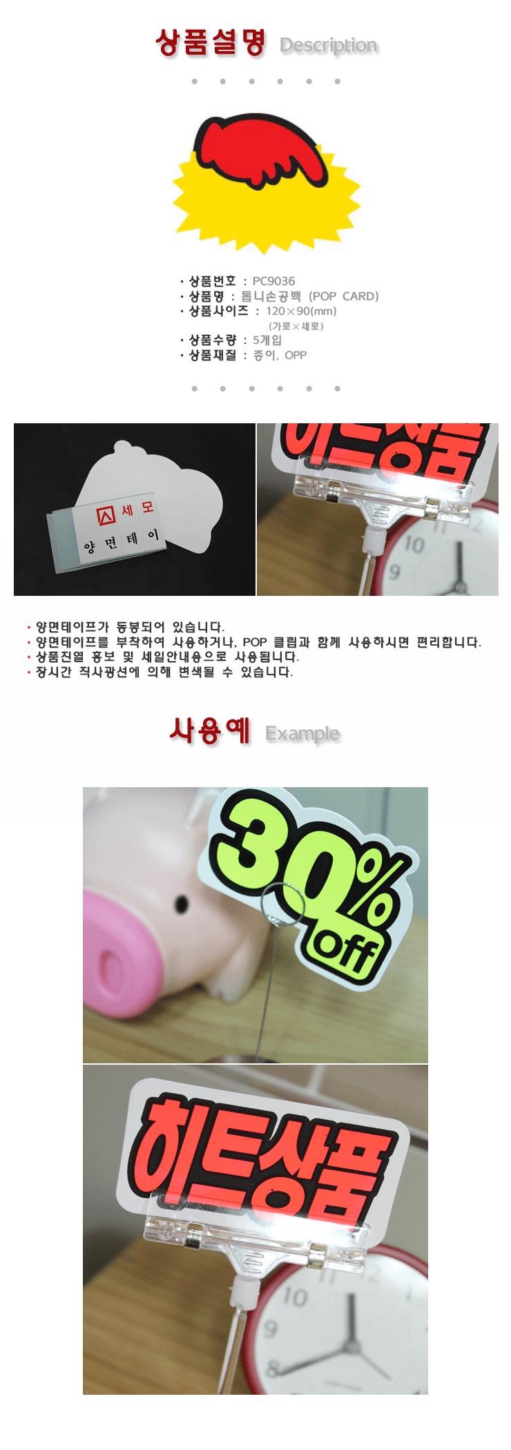 업소용 마트용품 POP카드-톱니 손 공백 x10개 메뉴POP