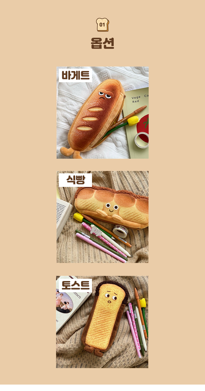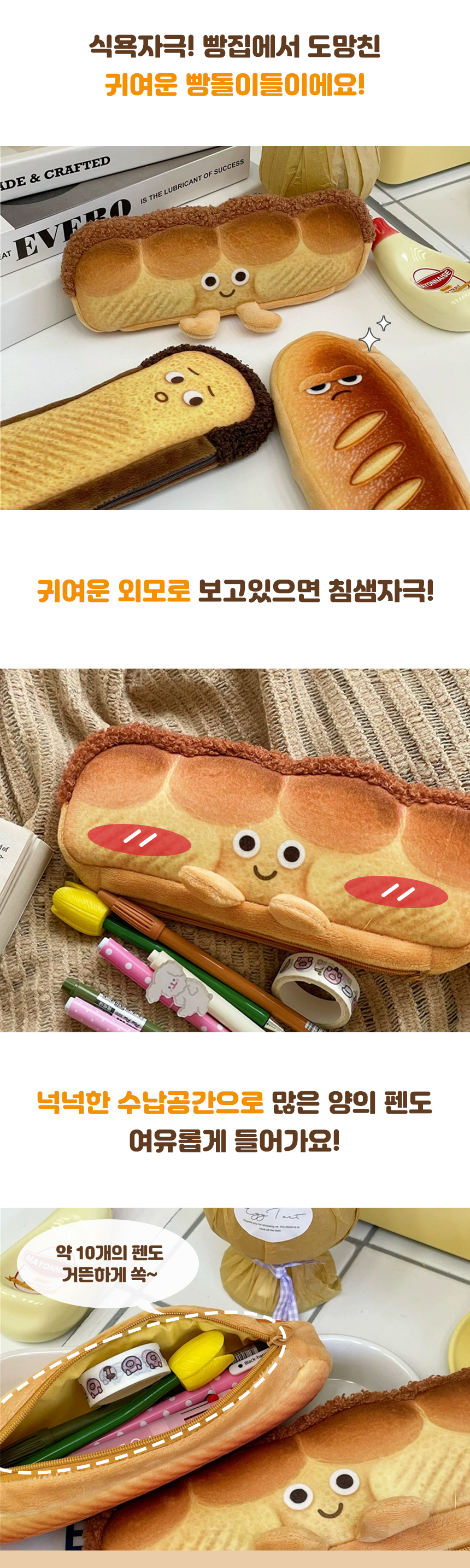 느낌상점 식빵 토스트 바게트 펜 파우치 인형필통 제과 빵집 필기수 수납
