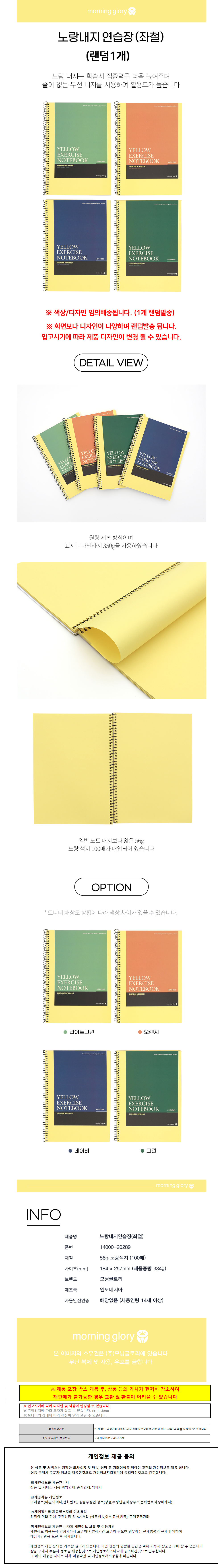 모닝글로리 연습장 노랑내지 스프링연습장 (랜덤1개)