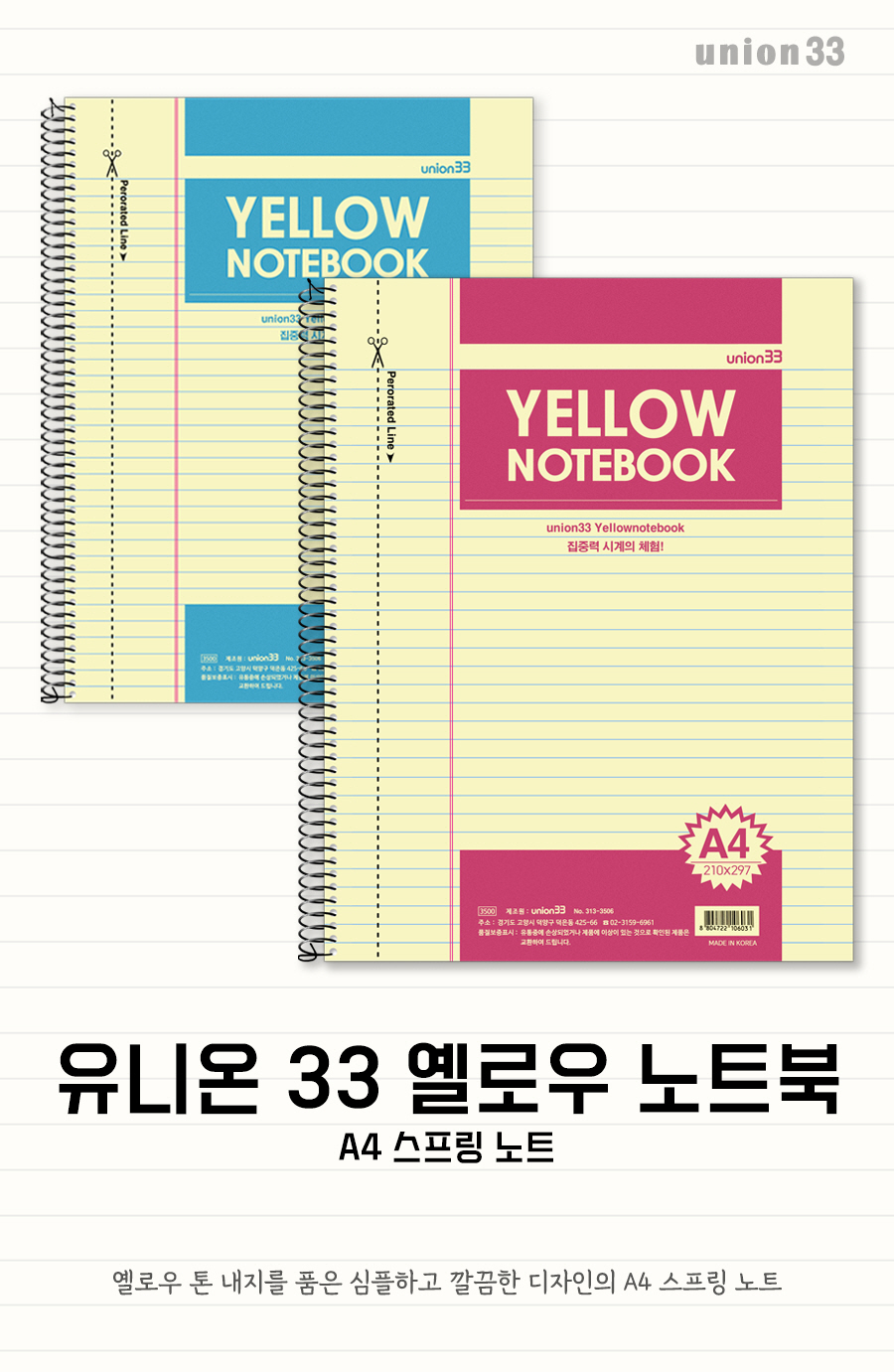 • 모델명유니온33 옐로우 노트북 스프링노트