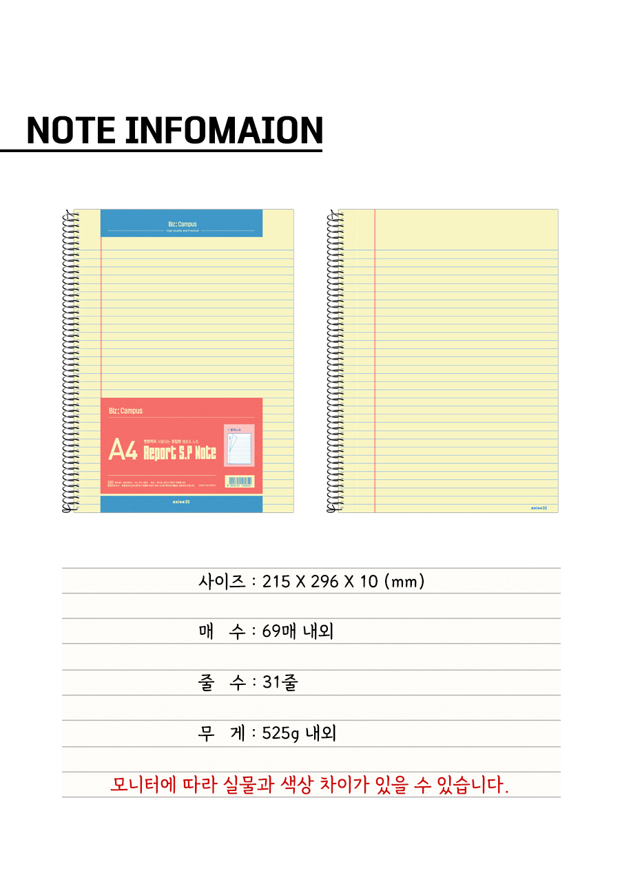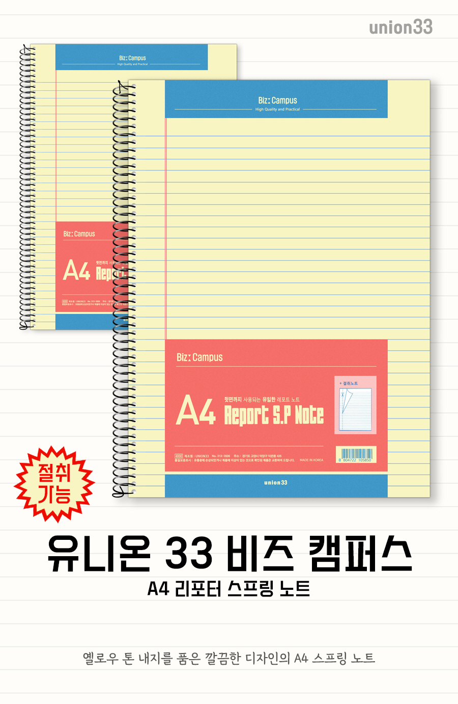 유니온33 비즈캠퍼스 A4 리포터 스프링노트