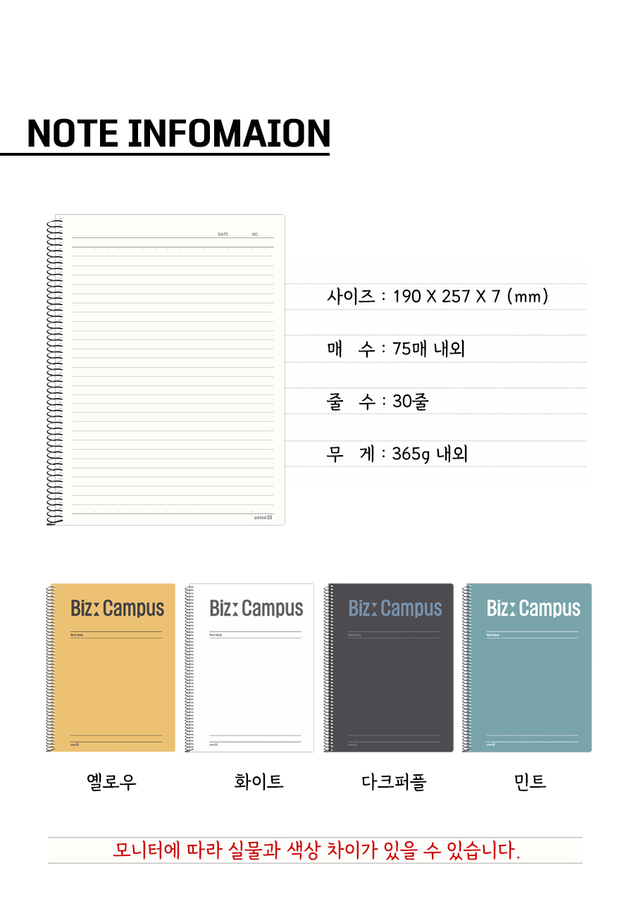 • 모델명유니온33 비즈캠퍼스 스프링노트