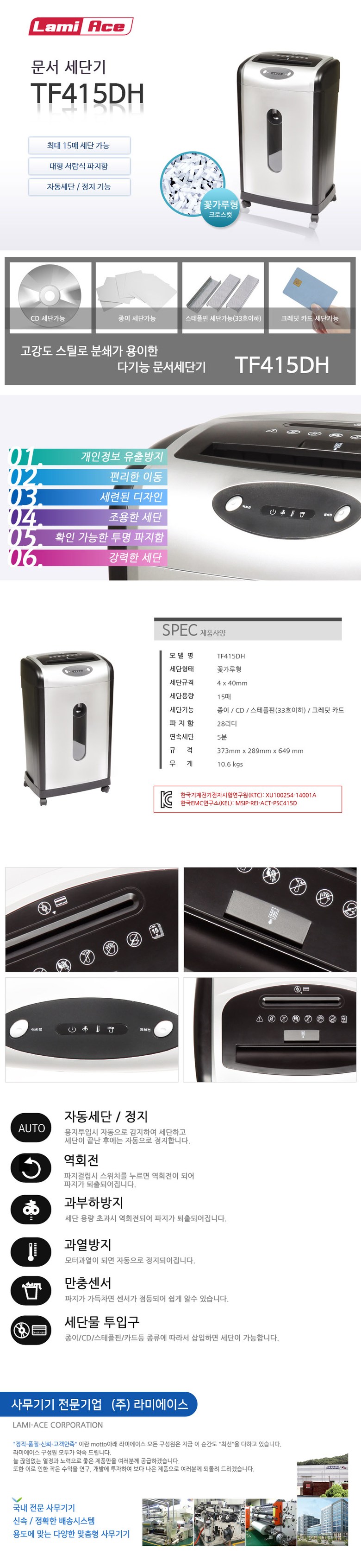 | 품명 및 모델명 | 문서세단기/라미에이스 문서세단기 [TF415DH] |