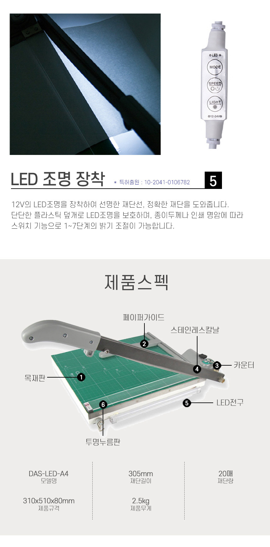 품명 및 모델명 라미에이스 LED 작두형 재단기 A4 커팅기 절단기 종이커터기 DAS-LED-A4