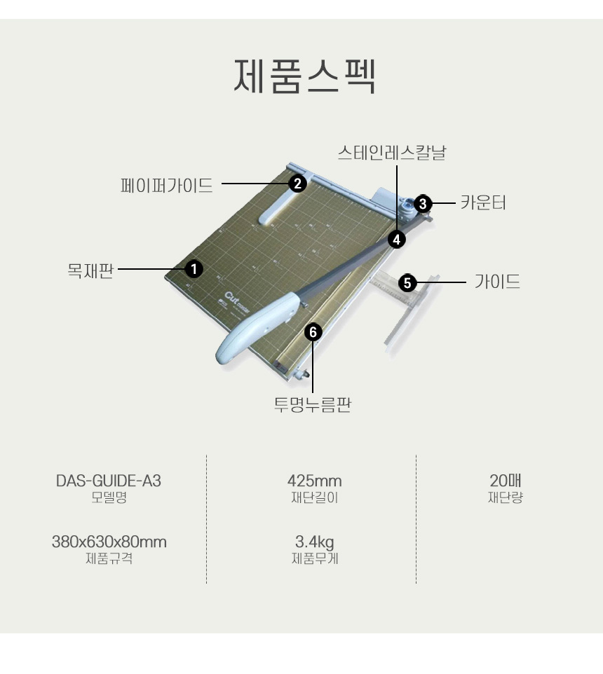 | 품명 및 모델명 | 라미에이스 작두형 재단기 A3 커팅기 절단기 종이커터기 DAS-GUIDE-A3 |