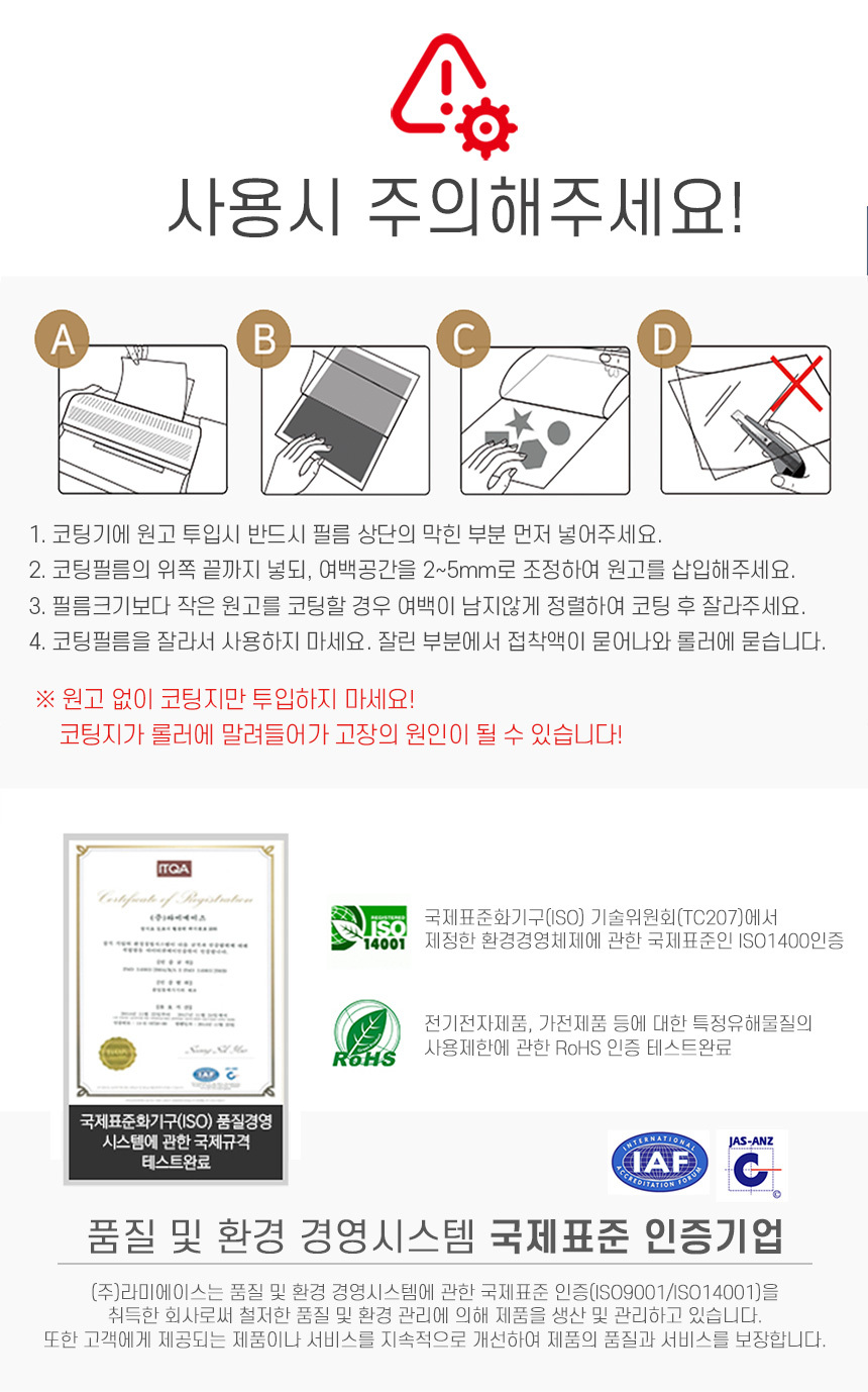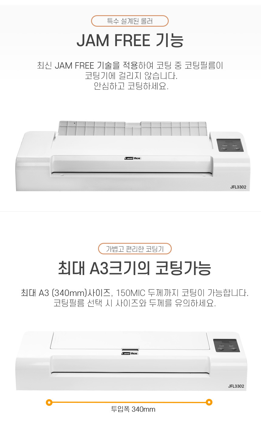 | 품명 및 모델명 | 라미에이스 JAM FREE A3 코팅기 JFL3302 |