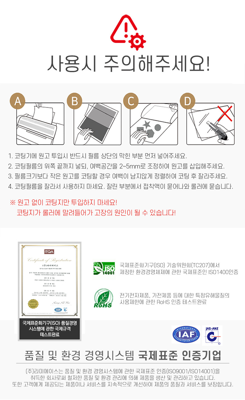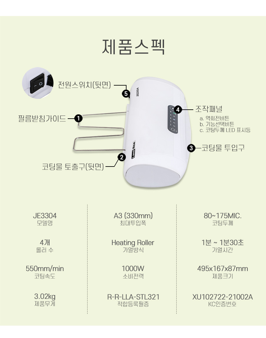 | 품명 및 모델명 | 라미에이스 4롤러 A3 코팅기 JE3304 |
