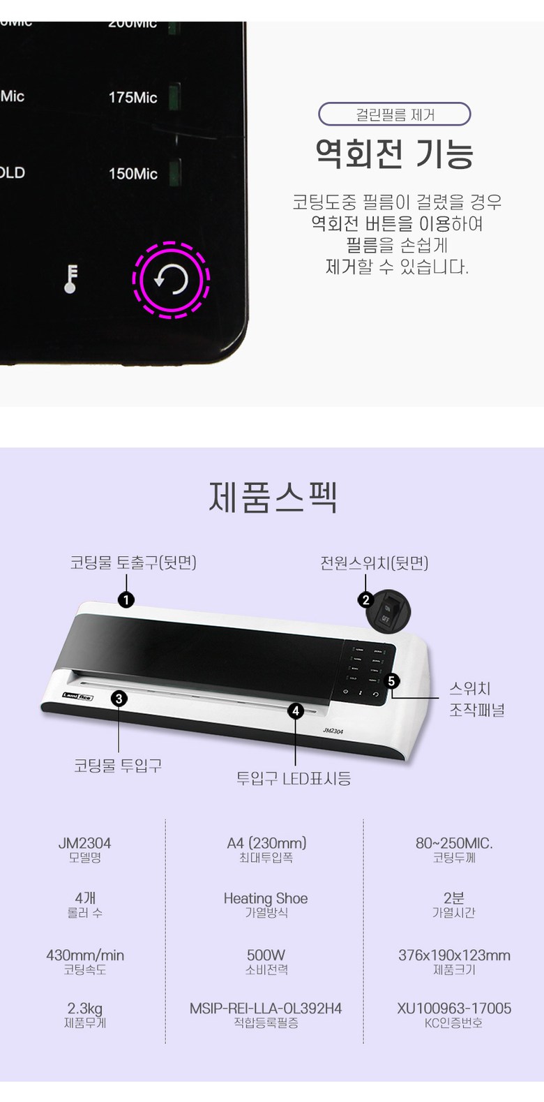 품명 및 모델명 코팅기/라미이스 코팅기 [LamiAce JM2304]