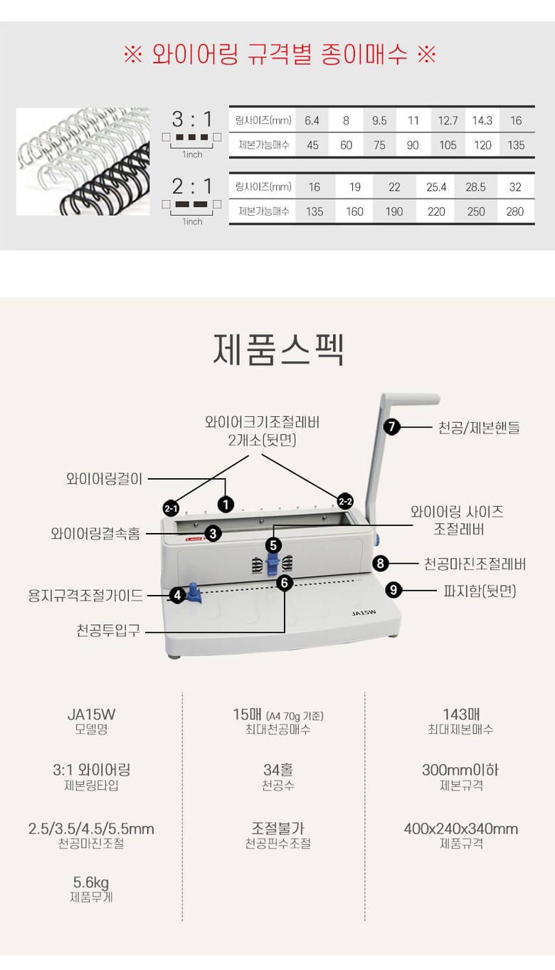 라미에이스 3:1 와이어링 제본기 JA-15W