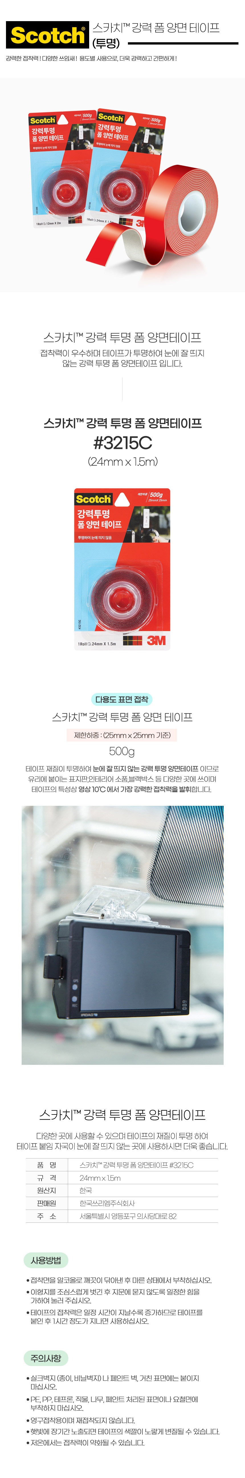 3M 스카치 강력 투명 폼 양면 테이프 3215C (24mm x 1.5m)
