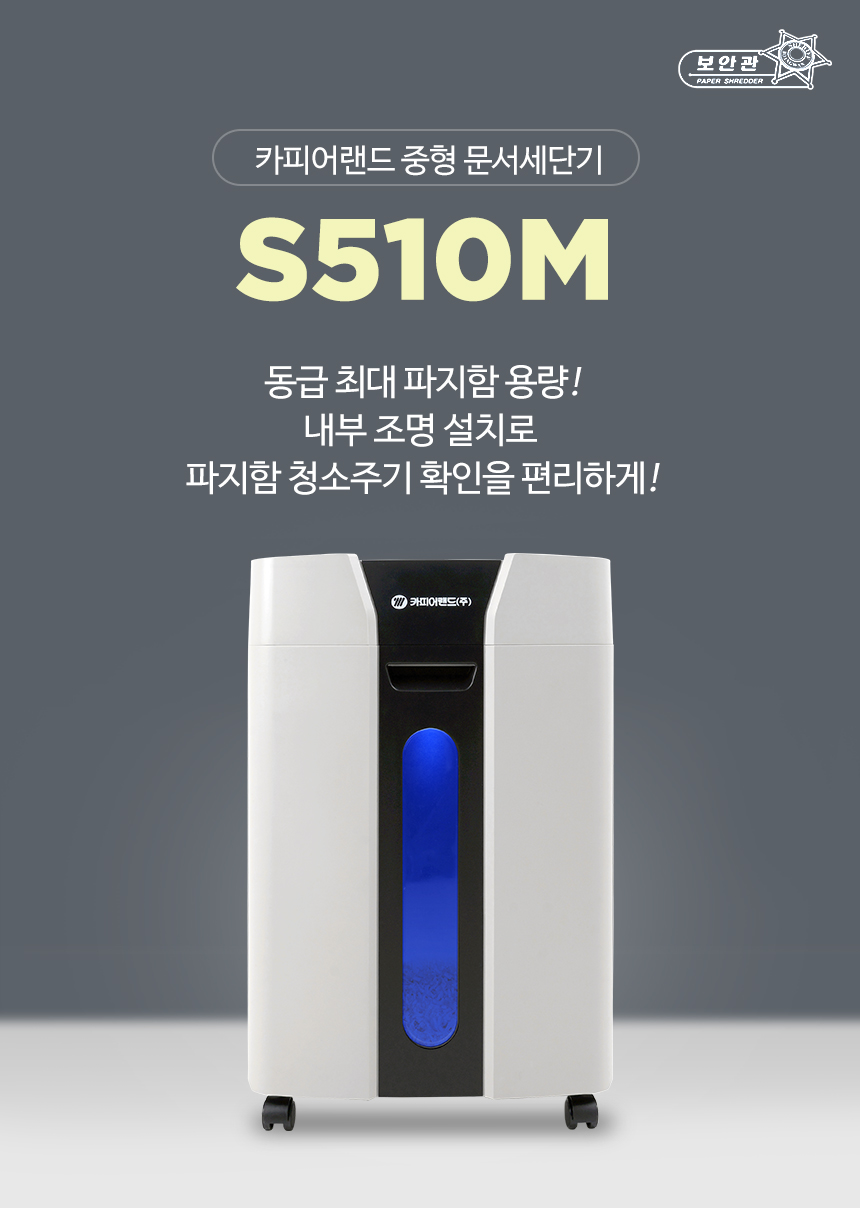 | 품명 및 모델명 | 카피어랜드 중형 꽃가루형 미세세단 문서세단기 보안관 S510M |