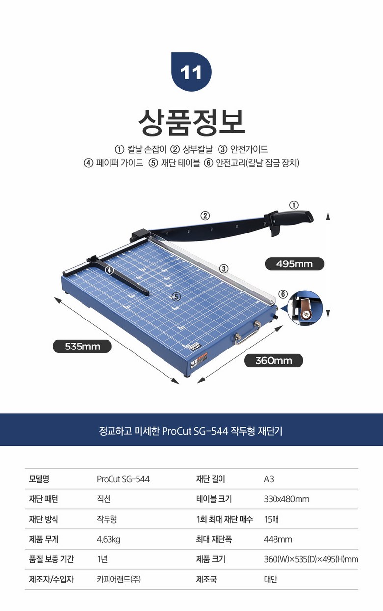 | 품명 및 모델명 | 카피어랜드 A3 직선 작두형재단기/ProCut SG-544 |