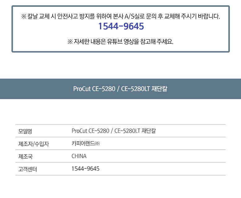 | 품명 및 모델명 | 카피어랜드 전동 유압식 자동재단기 ProCut CE-5280 / CE-5280LT 전용 재단칼 |
