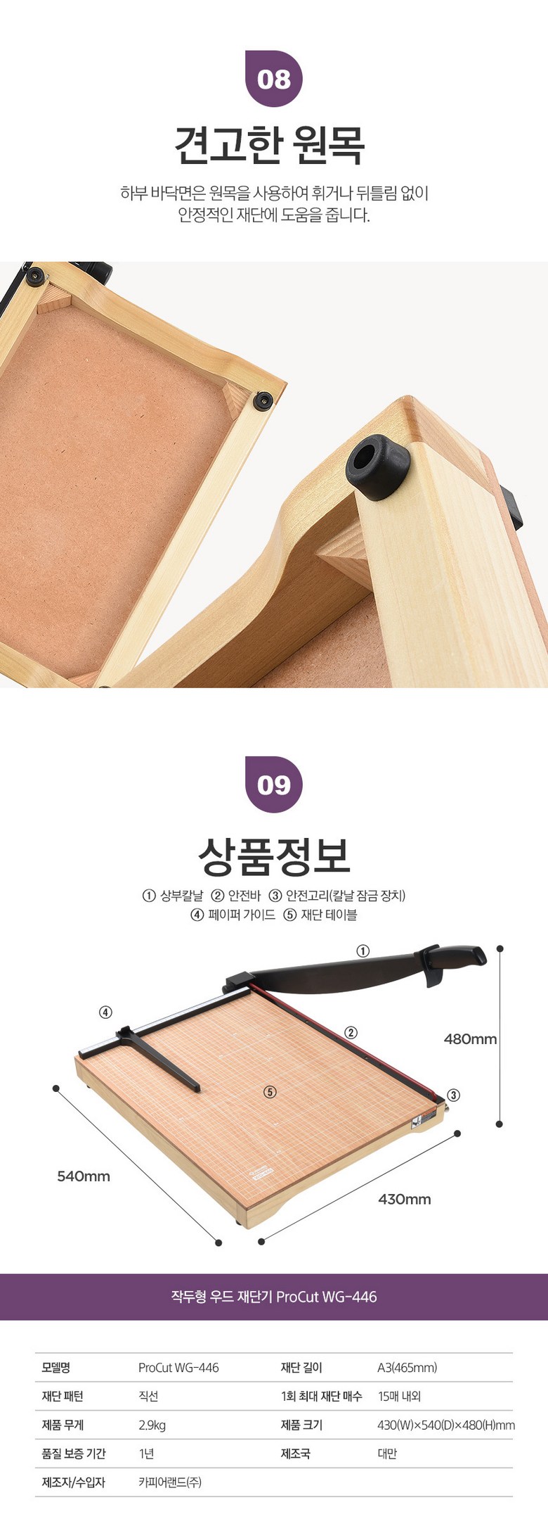 | 품명 및 모델명 | 카피어랜드 A3 작두형재단기/ProCut WG-446 |
