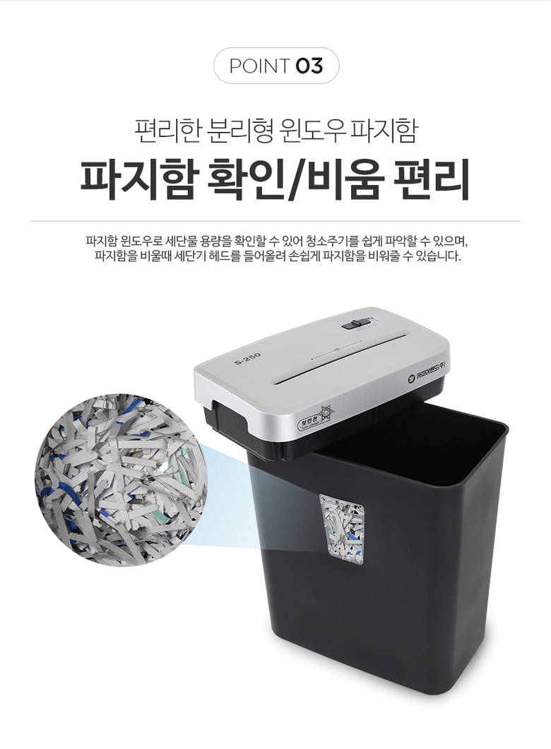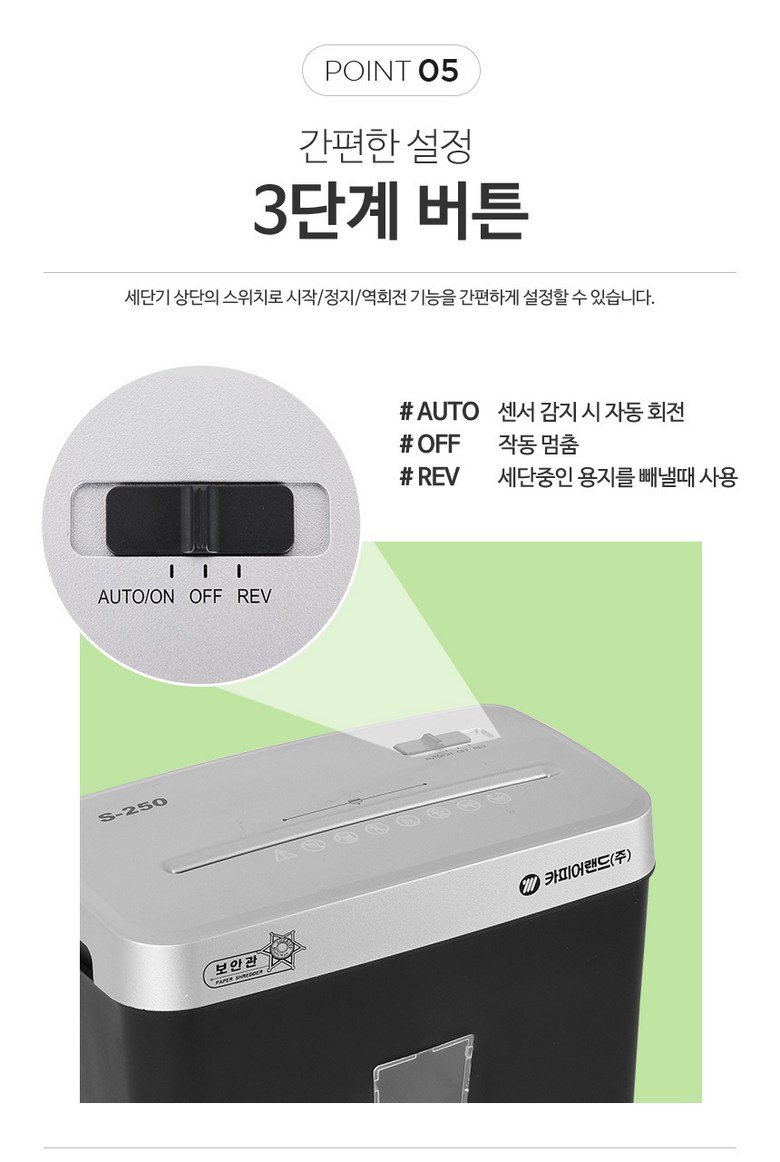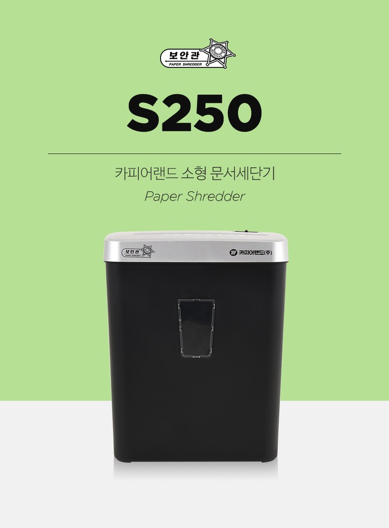 | 품명 및 모델명 | 카피어랜드 소형 꽃가루형 세단 문서세단기 보안관/S250 |