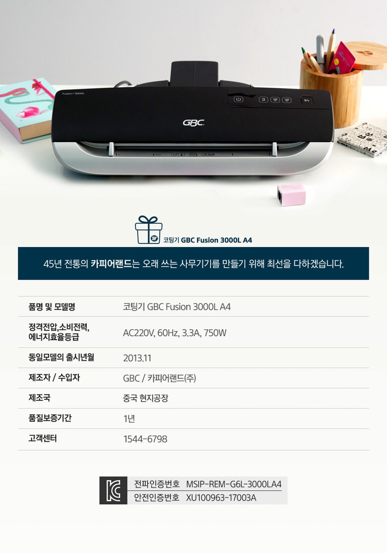 | 품명 및 모델명 | 카피어랜드 A4 코팅기/GBC Fusion 3000L 2롤러 |