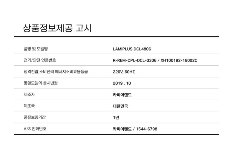 | 품명 및 모델명 | 카피어랜드 A2 코팅기/ProLami DCL4806 |