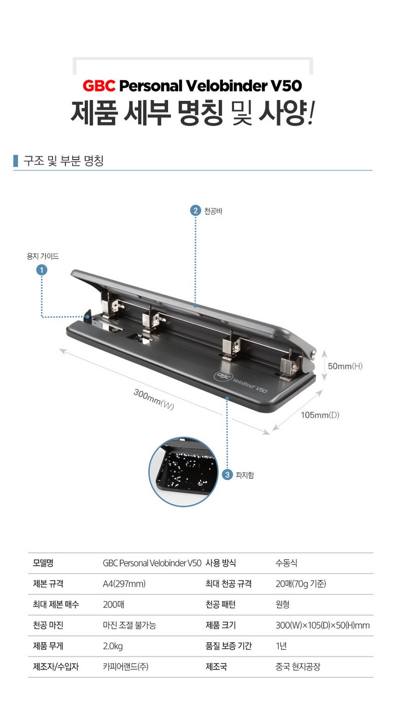 | 품명 및 모델명 | A4 수동 4핀 스트립 제본기/ProBind GBC VeloBinder V50 |
