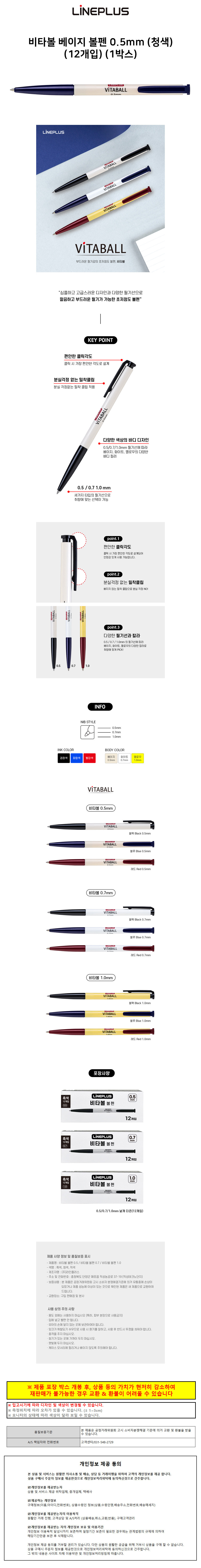 라인플러스 볼펜 비타볼 베이지 0.5mm (청색) (12개입) (1박스)