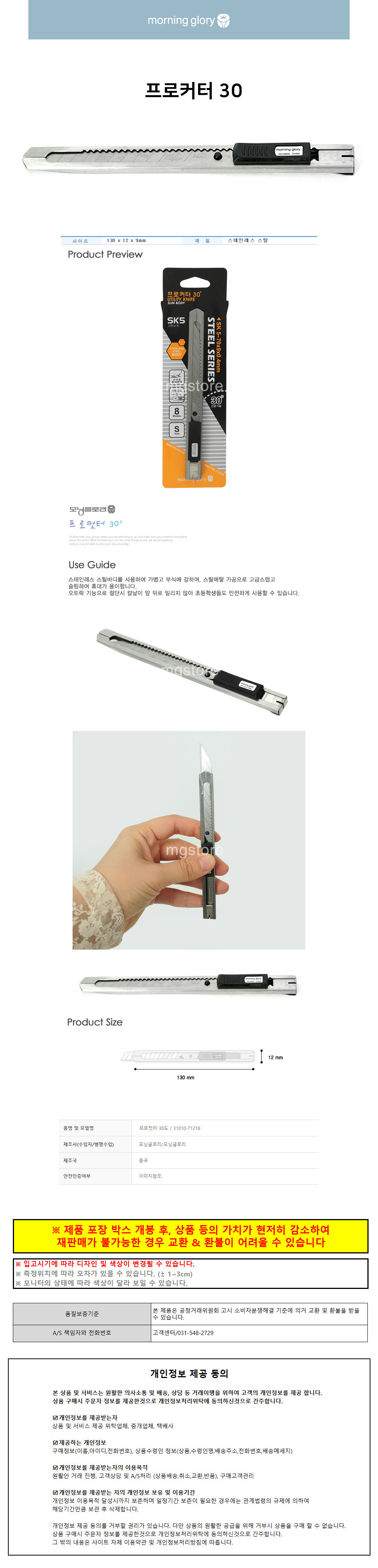 모닝글로리 커터칼 프로커터 30
